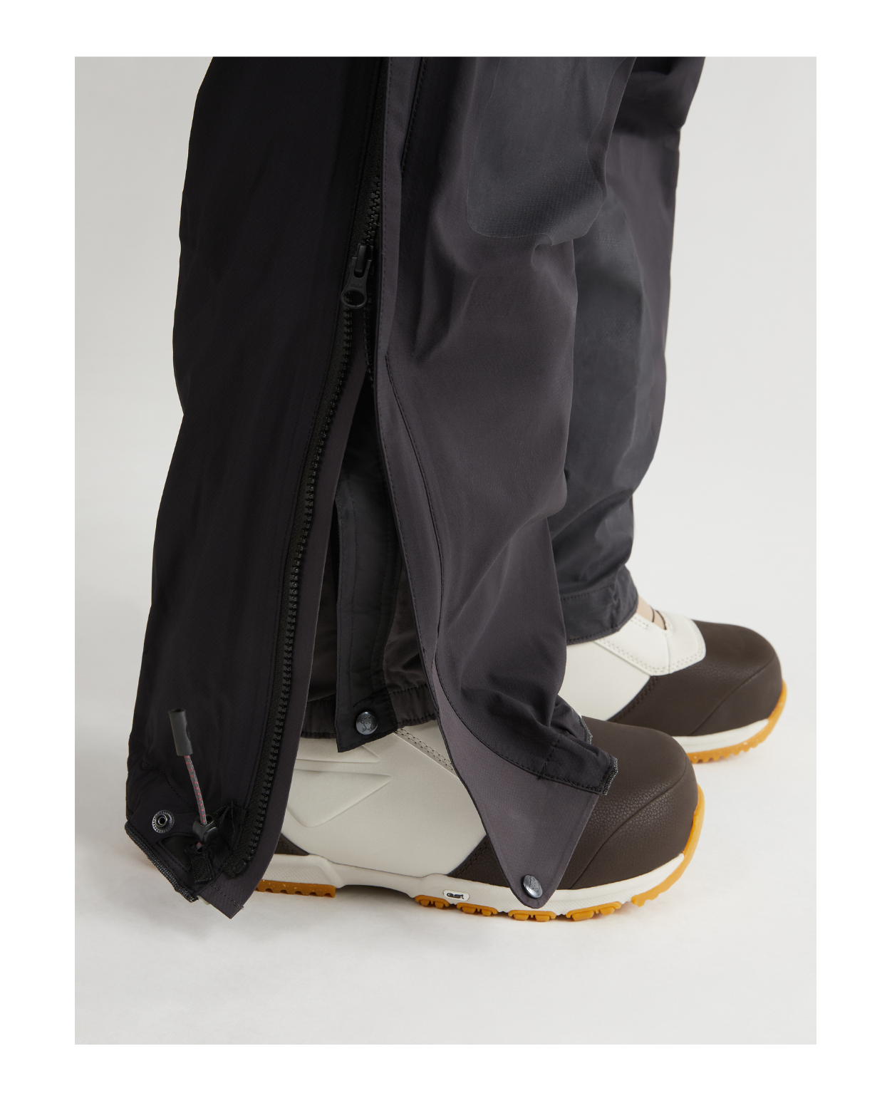 Hellånga tvåvägs sidodragkedjor gör det enkelt att reglera temperaturen, samtidigt som de förenklar av- och påtagning med pjäxor på. Aramidförstärkta benslut och Duracoat™-paneler över knän och insida ben ger mycket hög slitstyrka för lång livslängd vid användning med stighudar, kantstål och stegjärn.